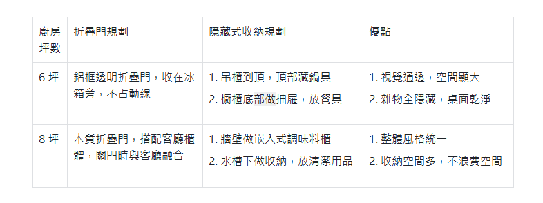 台灣小坪數住家超普遍,尤其廚房空間常被壓縮到慘兮兮!想在狹小廚房裡塞下鍋碗瓢盆,又要動線順暢?其實掌握「折疊門+隱藏式收納」的組合術,就能讓小廚房大變身~這篇就手把手教大家怎麼規劃,讓廚房裝修既省空間又好看!